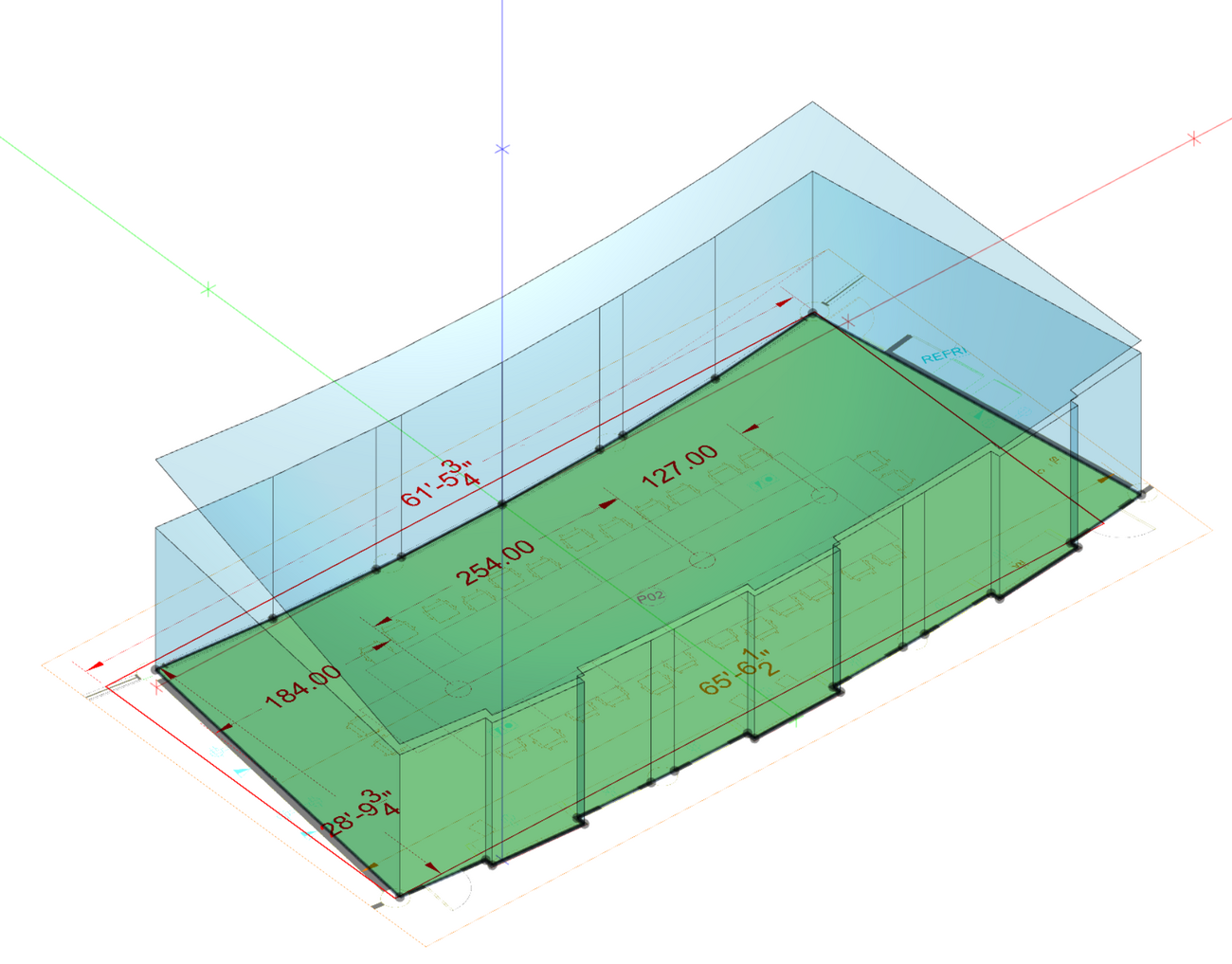 This surface defines the slope of the ceiling and will serve as the reference plane for the final ceiling geometry.